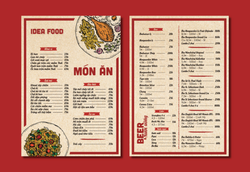 Bạn đang tìm kiếm cảm hứng cho một mẫu menu quán nhậu thật độc đáo và chuyên nghiệp? Trong bài viết này, chúng tôi sẽ giới thiệu Top 10 mẫu menu quán nhậu đẹp mắt và chuyên nghiệp để giúp bạn thu hút khách hàng và nâng cao trải nghiệm tại quán. Một thiết kế menu ấn tượng không chỉ gây ấn tượng mạnh mẽ ngay từ cái nhìn đầu tiên mà còn là yếu tố quan trọng trong việc tăng doanh thu và xây dựng thương hiệu quán. Hãy cùng khám phá những mẫu menu đặc sắc, phù hợp với mọi phong cách quán nhậu, từ cổ điển đến hiện đại. Vai trò của menu quán nhậuMenu quán nhậu không chỉ đơn thuần liệt kê món ăn và đồ uống; nó còn đóng vai trò thiết yếu trong việc tạo dựng trải nghiệm của khách hàng. Một menu được thiết kế tốt giúp khách hàng dễ dàng lựa chọn món, tạo ấn tượng ngay từ đầu và phản ánh phong cách của quán. Menu cũng giúp tăng doanh thu bằng cách khuyến khích khách thử món mới và củng cố thương hiệu quán nhậu qua sự chuyên nghiệp và sự quan tâm đến khách hàng. Một menu rõ ràng và hấp dẫn không chỉ làm khách hàng hài lòng mà còn khiến họ muốn quay lại nhiều lần. Tiêu chí lựa chọn mẫu menu quán nhậu đẹp mắt và chuyên nghiệpKhi chọn mẫu menu cho quán nhậu, bạn cần chú ý đến một số yếu tố quan trọng để đảm bảo thiết kế vừa đẹp mắt vừa chuyên nghiệp: